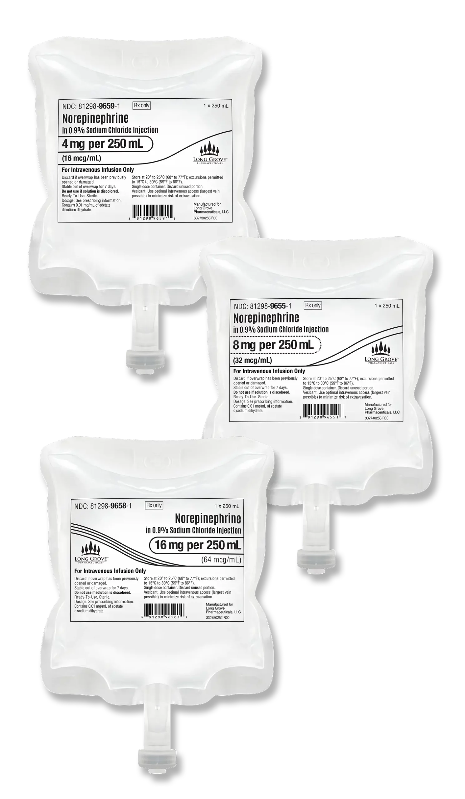 The Long Grove labeling system is designed to be read at a glance. No two labels are the same, and design encodes information about the product and its strength, so that life-saving care can be administered faster and without error.